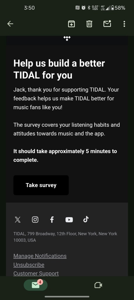 To make things better, on a day when I was thinking about how much I liked using TIDAL and the handful of disadvantages it offered, this popped up in my inbox: