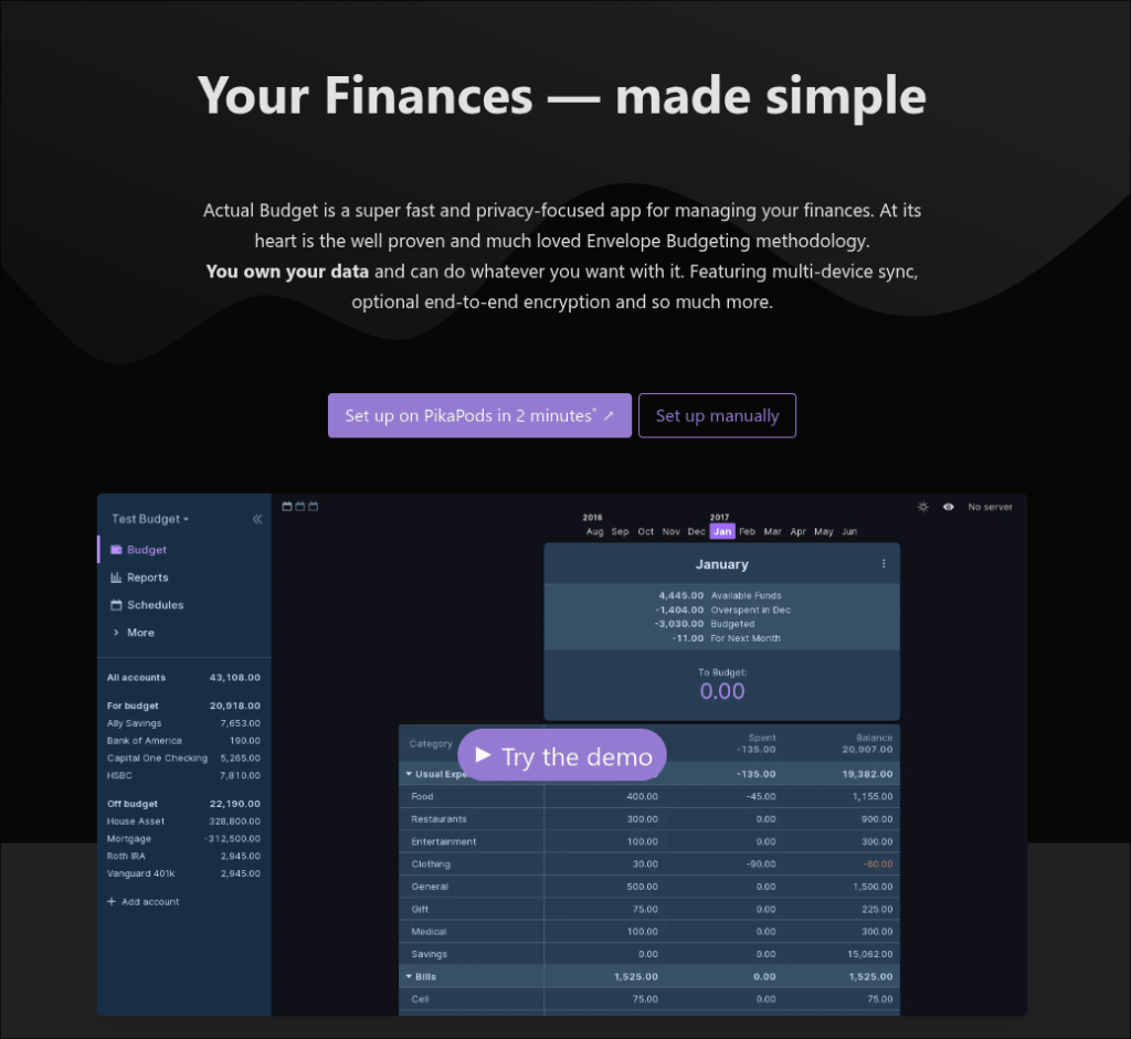 I tried using Actual Budget for a few weeks, and I’ll give credit where credit is due. If you want something that looks and feels a lot like YNAB 1-to-1, this is as good as it gets.
