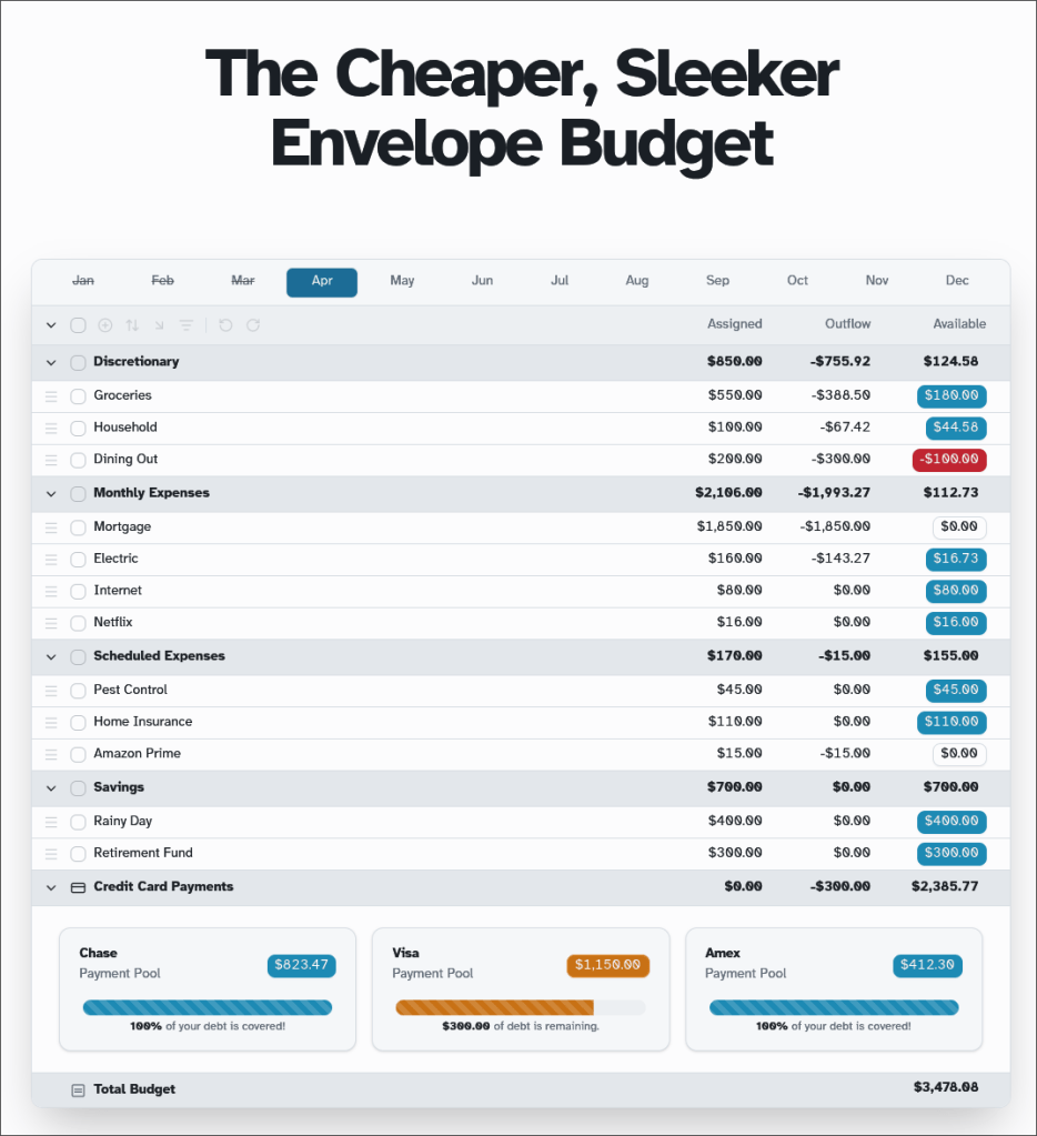 However, I have yet to find a way to set a specific, fixed number to not go over. As a result, it’s not a direct one-to-one replacement for something like YNAB.